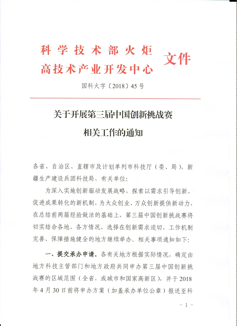 关于开展第三届中国创新挑战赛相关工作的通知